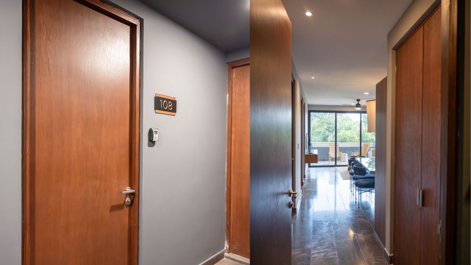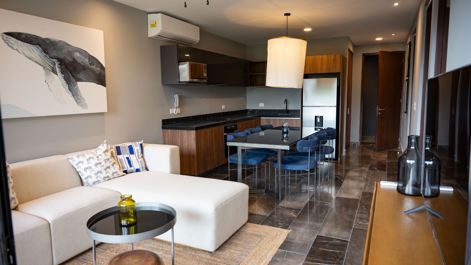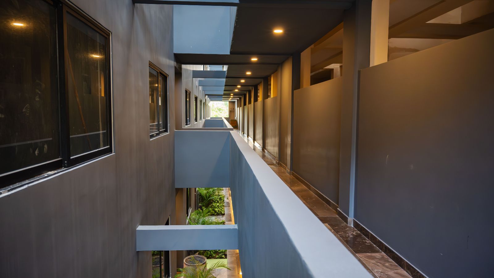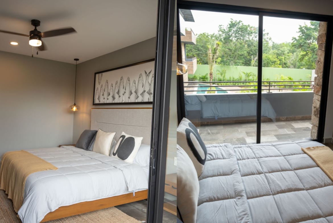 The design in dark shades create this unique contrast with the natural materials incorporated. Spaces are ore planned with the purpose of letting residents have this wellness sensation, having an amazing view to the jungle.